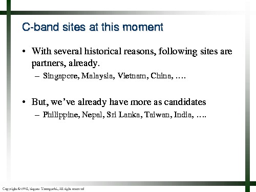 C-band site selection, Suguru Yamaguchi: Slide 8 of 8.