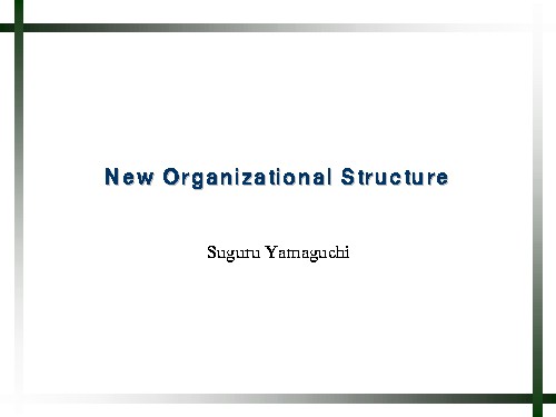 New organizational structure, Suguru Yamaguchi: Slide 1 of 4.